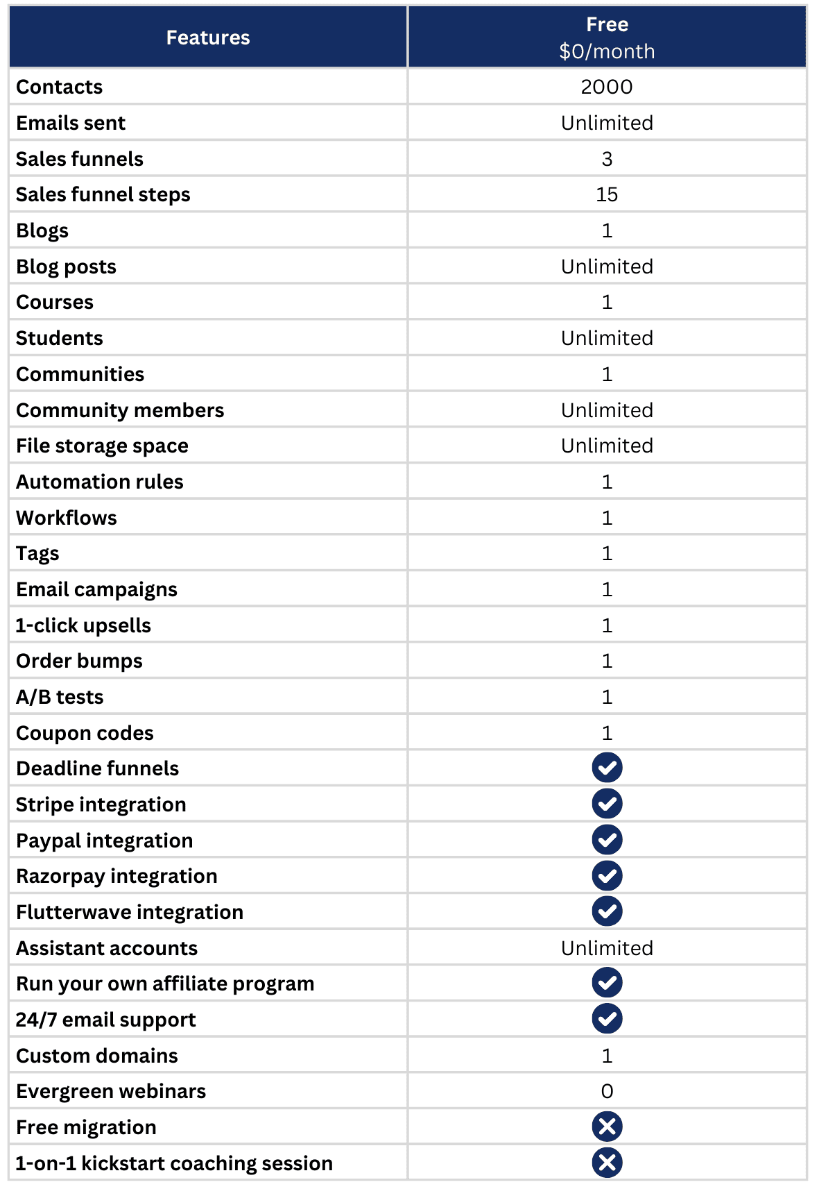 Here are just some of the things you can do on Systemeβs free plan: